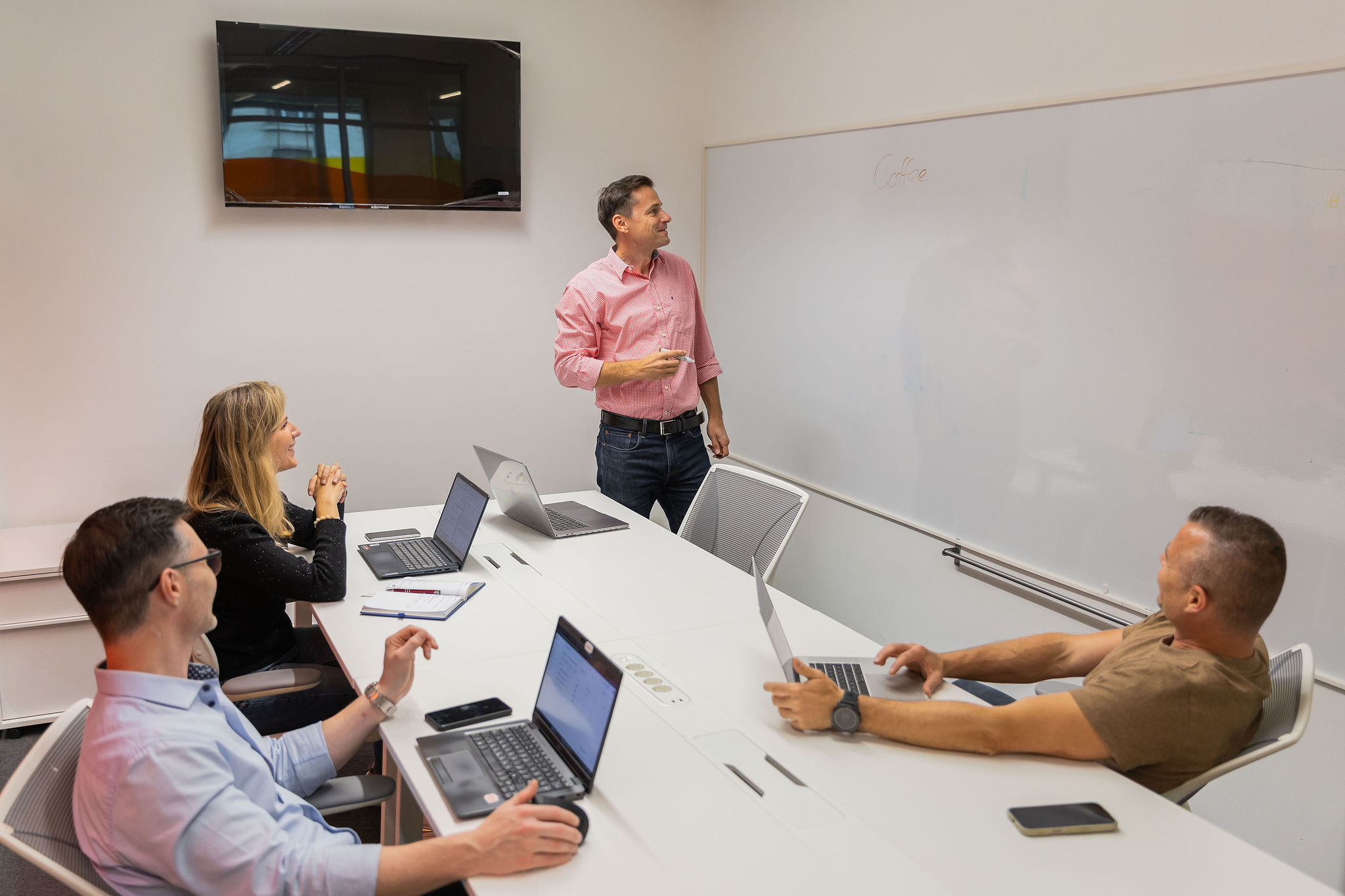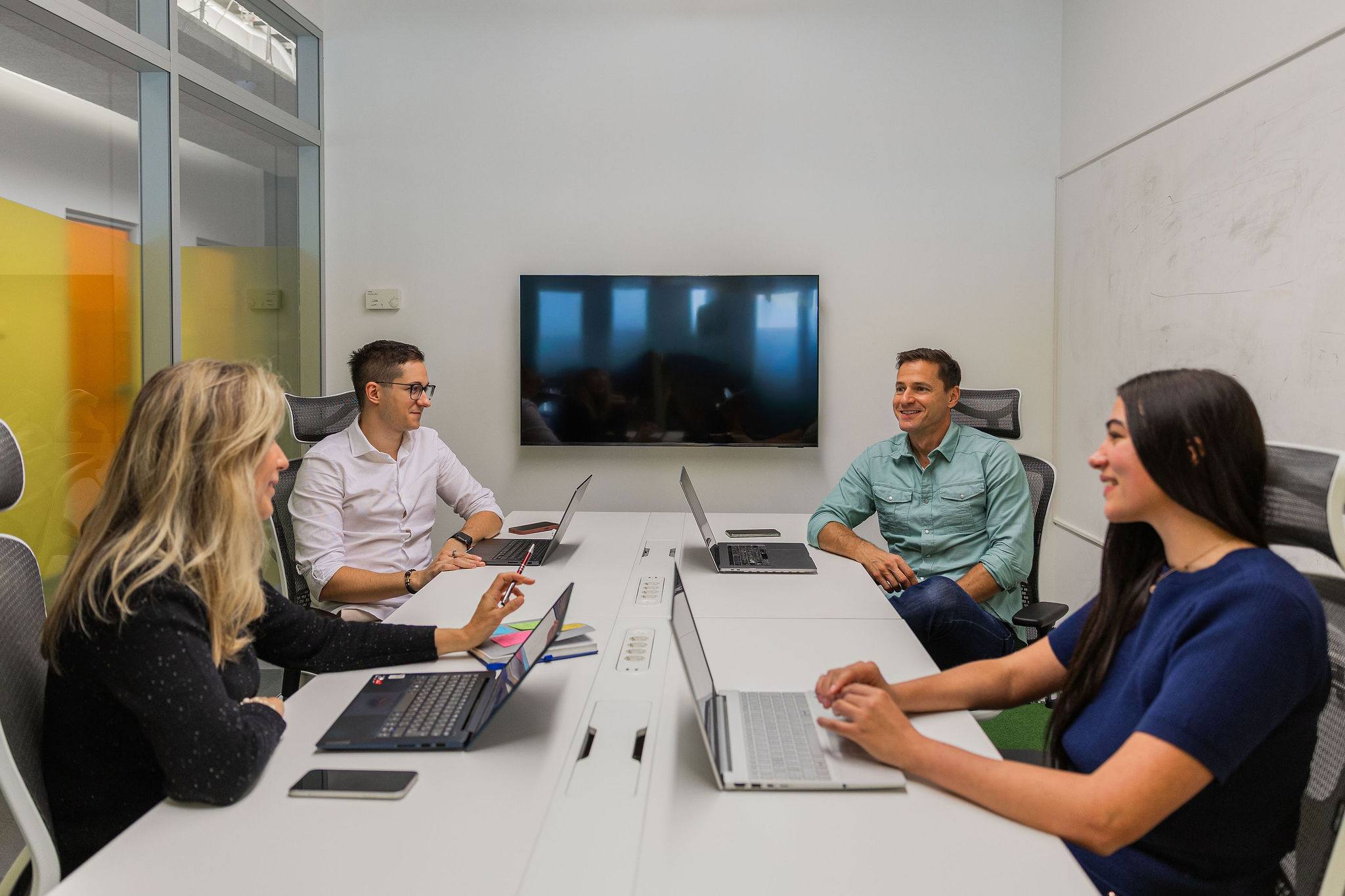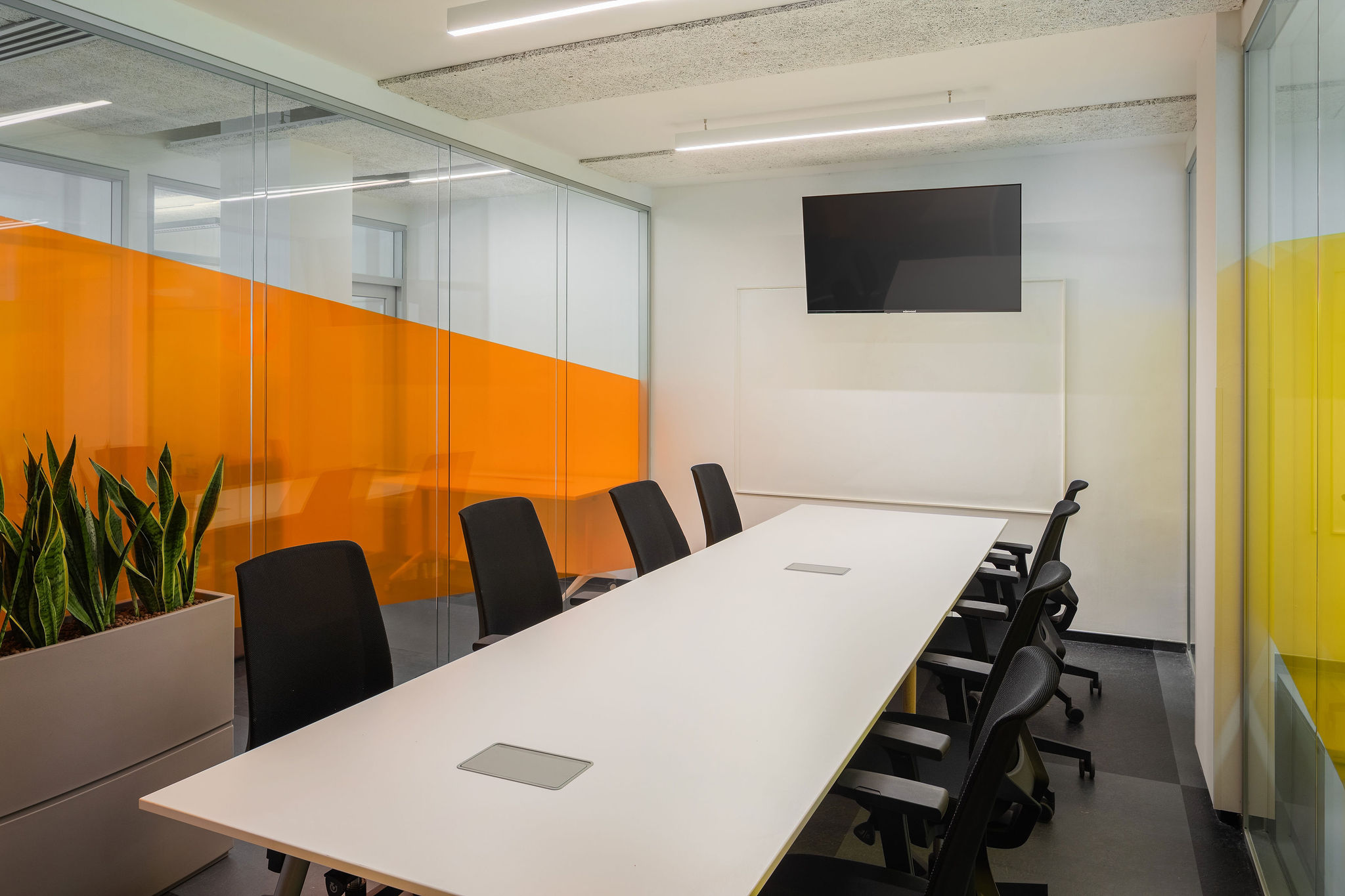 Big screens, smart microphones and hybrid conferencing devices. It's not a fairytale: our meeting rooms can accommodate 2-10 people, so not only will meetings be effective if everyone is in the room, we're also prepared for when some of your team joins in remotely.